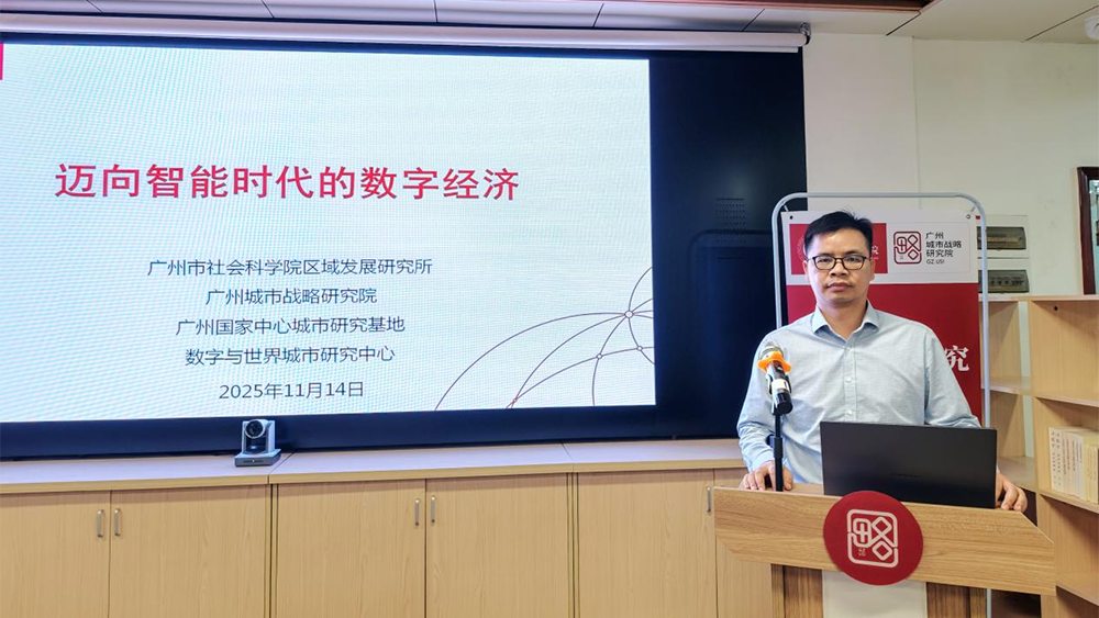 2025年11月14日,第十二期城市战略研究工作营人工智能驱动下广州数字经济创新发展研讨会暨《广州数字经济发展报告(2026)》选题会顺利召开。本次研讨会由广州市社会科学院主办,广州市社会科学院区域发展研究所、广州城市战略研究院、广州国家中心城市研究基地、数字与世界城市研究中心承办。会议由广州市社会科学院科研处处长蔡进兵主持,来自工信部信息通信经济专家委员会、华南理工大学、广东财经大学、《南方》杂志、湖南大学等机构的专家学者参会交流。