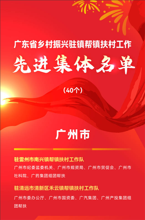 12月11日,广东省人力资源和社会保障厅、广东省农业农村厅联合发布《关于表彰全省乡村振兴驻镇帮镇扶村工作先进集体和先进个人的决定》,由广州市纪委监委机关牵头,我院作为组团单位的驻雷州市南兴镇帮镇扶村工作队获“广东省乡村振兴驻镇帮镇扶村工作先进集体”称号。这是广东首次对乡村振兴驻镇帮镇扶村工作开展表彰,为全省乡村振兴帮扶工作一线树立起可学可做、可追可及的标杆。