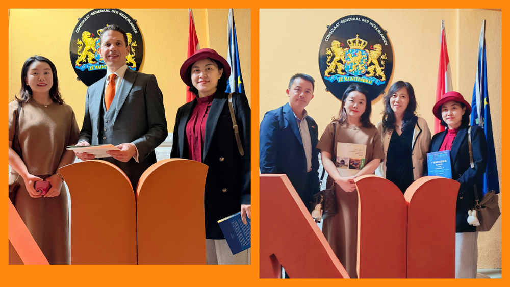 图1中为荷兰驻穗总领事馆总领事Efstathios Andreou;图2左一为文化官员何宏、右二为经济官员韩颖