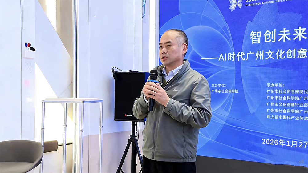 为深入贯彻落实习近平总书记关于文化产业高质量发展的重要指示精神,紧扣省委“1310”具体部署与市委“1312”思路举措,助力广州建设“中心型世界城市”与“12218”现代化产业体系,2026年1月27日,由广州市社会科学院主办,广州社会科学院现代产业研究所、广州文化产业研究中心、广州市文化创意行业协会等单位联合承办的“广州文化创意产业‘赛道领跑者’深度研讨会”在海珠区六元素体验中心隆重举行。