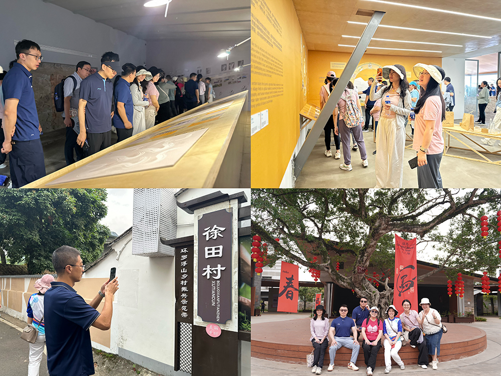 博罗徐田村不仅自然风光秀丽,更拥有深厚的历史文化积淀,是岭南客家文化与红色革命精神的交汇地,历史上走出 17 名武官而被誉为“武将村”,保存有五经魁、四德堂、都尉第等清代古建筑群,2013 年入选广东省古村落。作为环罗浮山乡村振兴示范带的重要节点,徐田村近年来通过活化利用古建筑和引入文旅项目,已蝶变为集历史文化、生态休闲于一体的网红旅游村。作为“百千万工程”的典型村落,博罗徐田村展现了新时代乡村发展的生动实践。在徐田古村,大家认真听取该村在统筹规划、产业发展、环境整治、文旅融合等方面的经验介绍,深入了解了其在推动“百千万工程”纵深发展中的具体做法。
