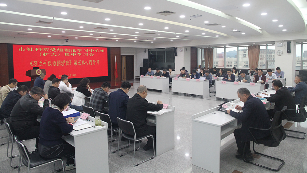 10月24日,市社科院召开党组理论学习中心组(扩大)集中学习会,传达学习中央办公厅转发《中央宣传部、中央组织部关于认真组织学习〈习近平谈治国理政〉第五卷的通知》精神,认真学习领会《习近平谈治国理政》第五卷,开展交流研讨,并就我院学习宣传贯彻工作作出部署安排。院党组书记、院长、院党组理论学习中心组组长张跃国主持学习并作中心发言。