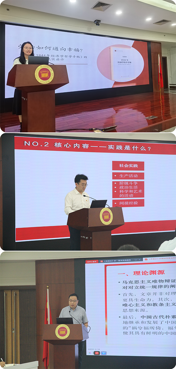 在分享会上,市社科院三位青年代表围绕阅读书目进行了深入细致分享,贺文娟从“异化劳动”理论出发,联系当代社会现象,探讨了人的本质与发展的哲学思考,引发了大家对现代性问题的深刻反思。张吉星以“知行统一”为核心,通过生动的案例,阐述了认识来源于实践并指导实践的辩证关系,强调了在工作中坚持实事求是、调查研究的重要性。麦劲恒聚焦于“矛盾的普遍性与特殊性”,运用社会学的分析方法,对如何运用矛盾分析法看待和解决当前学习、科研及社会发展中面临的复杂问题,提供了可借鉴的方法。