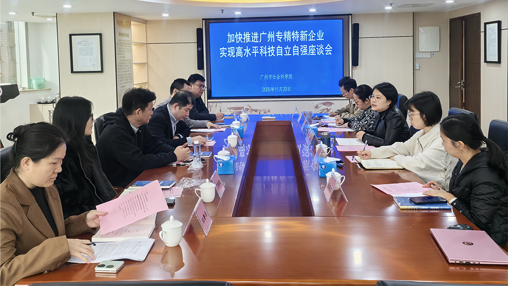 为助力广州科技创新强市建设,以科技自立自强抢占发展制高点,2025年11月20日,广州市社会科学院科技创新研究所在院六楼会议室举办“加快推进广州专精特新企业实现高水平科技自立自强”座谈会。座谈会由科技创新研究所副所长朱泯静主持,共邀请来自生物医药与健康、软件与互联网、智能装备与机器人、新能源与新型储能等产业的12家在穗专精特新企业负责人参会。12家企业负责人分为两组,分别参加上午、下午两场座谈会。