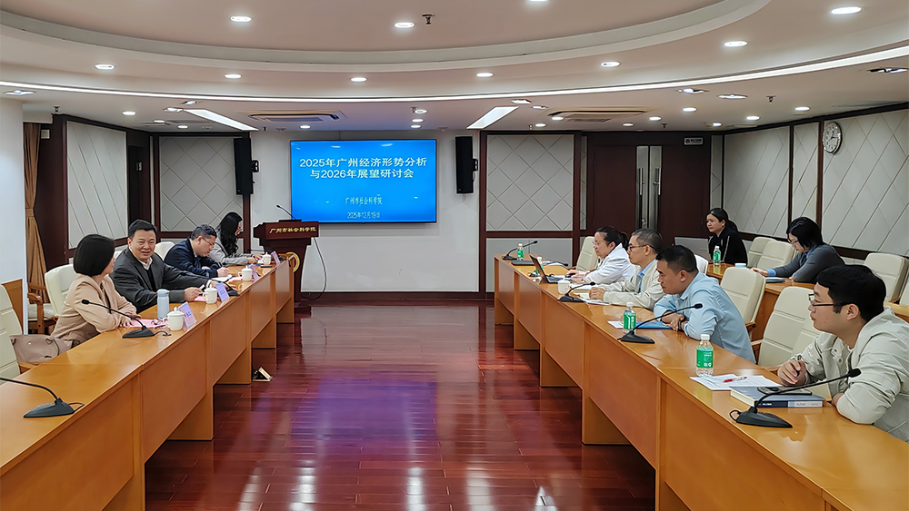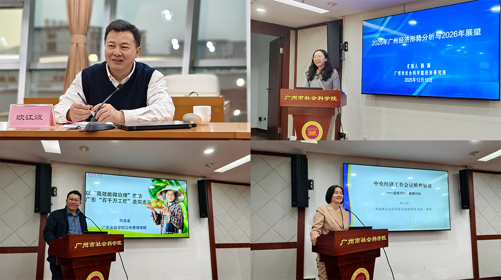 2025年12月19日,由广州市社会科学院主办、经济研究所承办的“2025年广州经济形势分析与2026年展望”学术研讨会成功举办。来自广州地区的高校、研究机构、政府部门的专家学者围绕2025年广州经济发展情况、2026年广州经济发展展望、广东“百千万工程”走深走实、中央经济工作会议精神等主题开展交流与探讨。经济研究所所长欧江波主持会议。