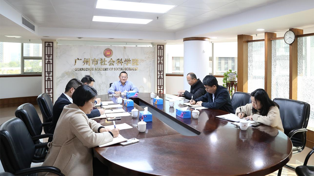 2026年1月12日,广州市社会科学院召开中层正职任前集体谈话会。院党组书记、院长张跃国主持会议并讲话。人事处(外事处)副处长陈汉城宣读了我院关于隆宏贤等3名同志任职通知。院机关党委副书记、机关纪委书记曾俊良,隆宏贤、陈旭佳和朱泯静等3名新任中层正职干部,以及办公室、人事处(外事处)有关同志参加会议。