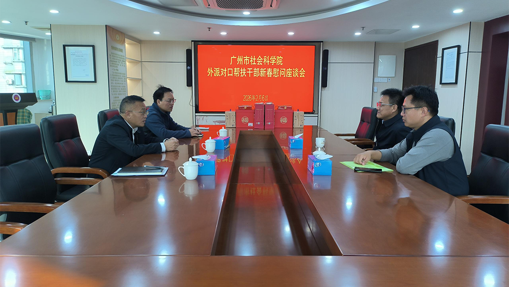 2026年2月6日,新春佳节来临之际,广州市社会科学院党组成员、副院长尹涛同志按照上级有关部门要求,牵头组织开展援派干部春节慰问座谈活动,分别与我院坚守在乡村振兴一线的广州对口帮扶协作清远指挥部干部陈杰同志和驻雷州市南兴镇帮扶干部刘松同志进行座谈,了解援派干部生活状况和工作近况,听取援派干部意见建议,为援派干部及家属致以诚挚问候和新春祝福。院人事处(外事处)参与座谈。