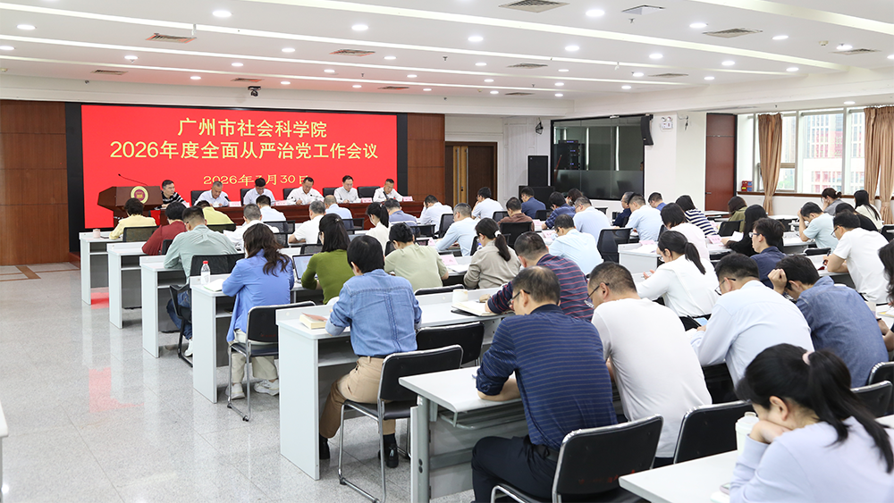 为深入学习贯彻习近平总书记关于全面从严治党的重要论述、习近平总书记关于开展树立和践行正确政绩观学习教育的重要讲话和重要指示精神,全面落实二十届中央纪委五次全会精神,按照2026年市直机关党的工作暨纪检工作会议和市直宣传文化系统全面从严治党工作会议要求,3月30日,广州市社会科学院召开2026年度全面从严治党工作会议。会议由院党组成员、副院长周成华主持,市纪委监委驻市委宣传部纪检监察组二级调研员林少华、市直机关工委基评工作部(研究室)副主任程鹏到会指导,院党组书记、院长张跃国讲话。