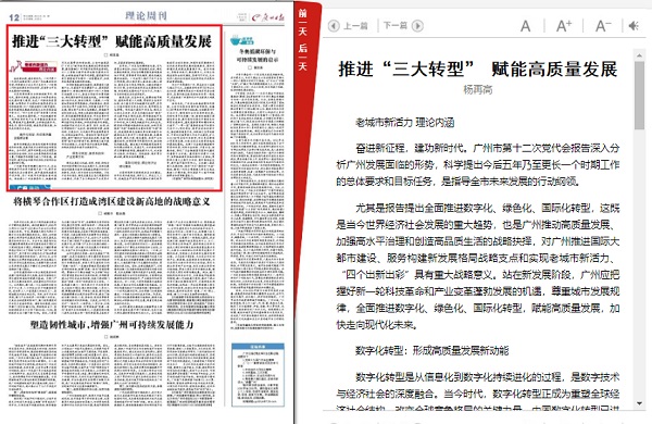 尤其是报告提出全面推进数字化、绿色化、国际化转型,这既是当今世界经济社会发展的重大趋势,也是广州推动高质量发展、加强高水平治理和创造高品质生活的战略抉择,对广州推进国际大都市建设、服务构建新发展格局战略支点和实现老城市新活力、“四个出新出彩”具有重大战略意义。站在新发展阶段,广州应把握好新一轮科技革命和产业变革蓬勃发展的机遇,尊重城市发展规律,全面推进数字化、绿色化、国际化转型,赋能高质量发展,加快走向现代化未来。
