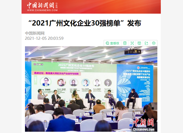 “2021广州文化企业30强榜单”发布