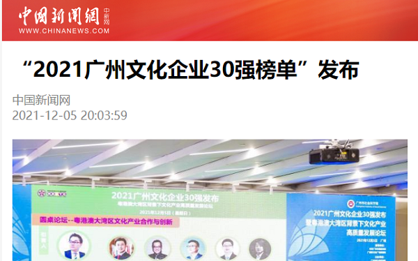 “2021广州文化企业30强榜单”发布