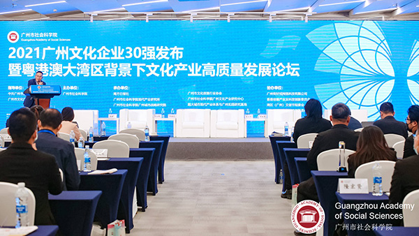 12月5日,由中共广州市委宣传部、广州市文化广电旅游局指导,广州市社会科学院主办的“广州文交会”系列活动之一“2021广州文化企业30强发布暨粤港澳大湾区背景下文化产业高质量发展论坛”系列学术会议在广州越秀国际会议中心举行。