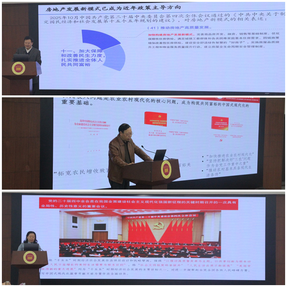 为深入学习贯彻党的二十届四中全会精神、习近平总书记视察广东和出席第十五届全国运动会开幕式重要讲话重要指示精神,以改革创新精神主动研究解答广州经济社会和我院发展中出现的新课题,更好在新起点上增创新优势实现新突破,2025年12月4日,市社科院召开党组理论学习中心组(扩大)集中学习会,综合运用“学习+研讨”的方式,深入学习领会党的二十届四中全会精神,全面准确把握核心要义、精神实质,统筹谋划贯彻落实举措。院党组书记、院长、院党组理论学习中心组组长张跃国主持学习并作中心发言。