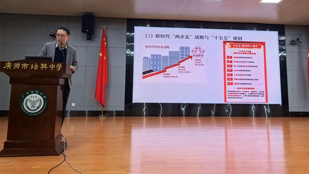 2026年1月12日下午,为深入学习贯彻党的二十届四中全会精神和中央关于“十五五”时期经济社会发展的决策部署,应广州市培英中学邀请,城市治理研究所陆闯博士以《“十五五”规划与当代青年成长》为题为该校200余名师生进行专题宣讲。