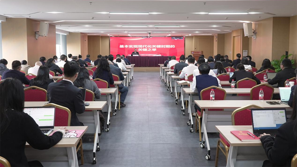 为深入学习宣传贯彻党的二十届四中全会精神,积极履行市委宣讲团成员职责,引导广大党员干部全面准确把握全会精神的丰富内涵和核心要义,更好服务广州“十五五”时期现代化建设和高质量发展,1月16日,市委宣讲团成员,院党组书记、院长张跃国应邀到广州交易集团开展专题宣讲。集团党委书记、董事长葛群同志主持会议。集团党委副书记、副董事长、总经理王苹同志等党委领导班子成员出席会议。